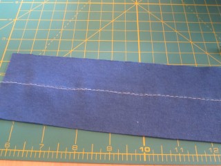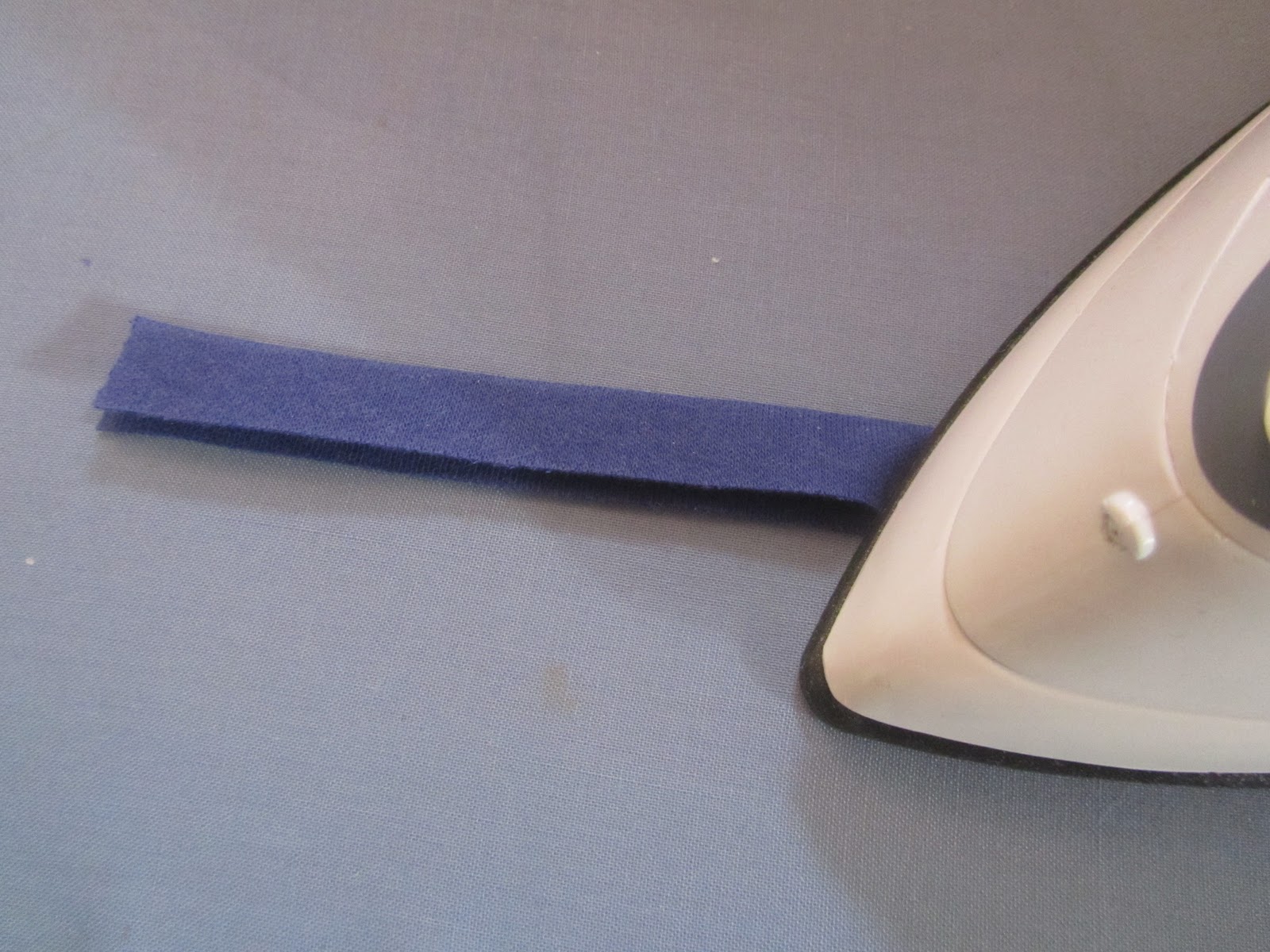 Now for the neckline. Take a good amount of solid fabric and iron it in half like so.