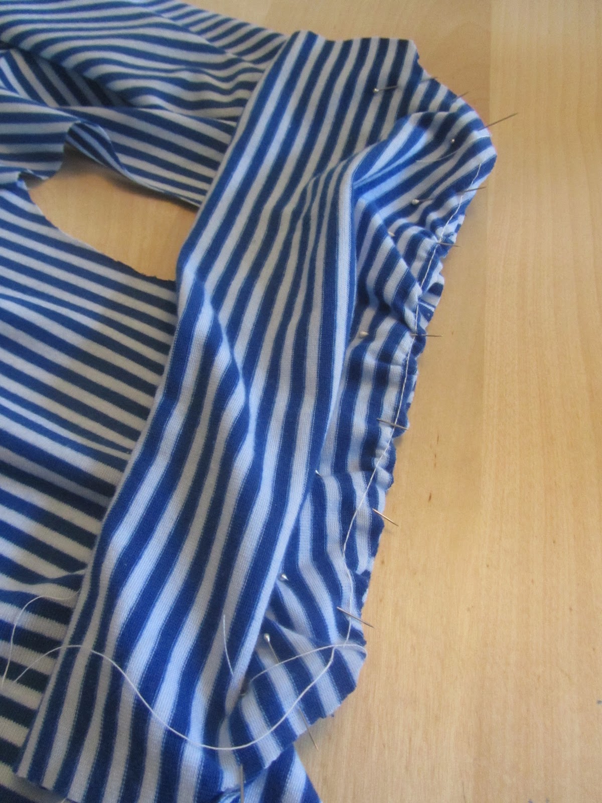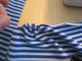 Then get your sleeves and do a gather stitch and gather until it fits your armhole