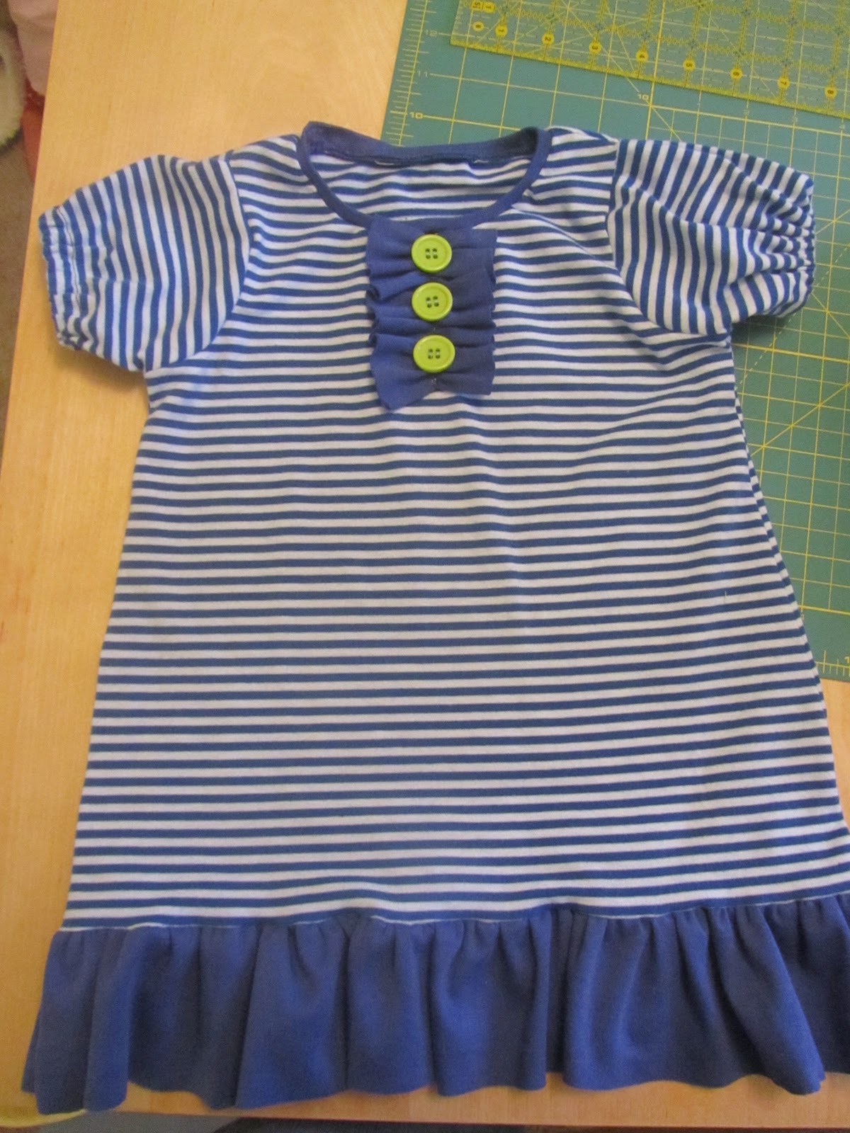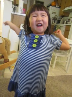 Then sew the sides of the dress and the bottom sides of the sleeve together with right sides of fabric together, and you’re done!!! Oh, and just hand sew on the buttons.