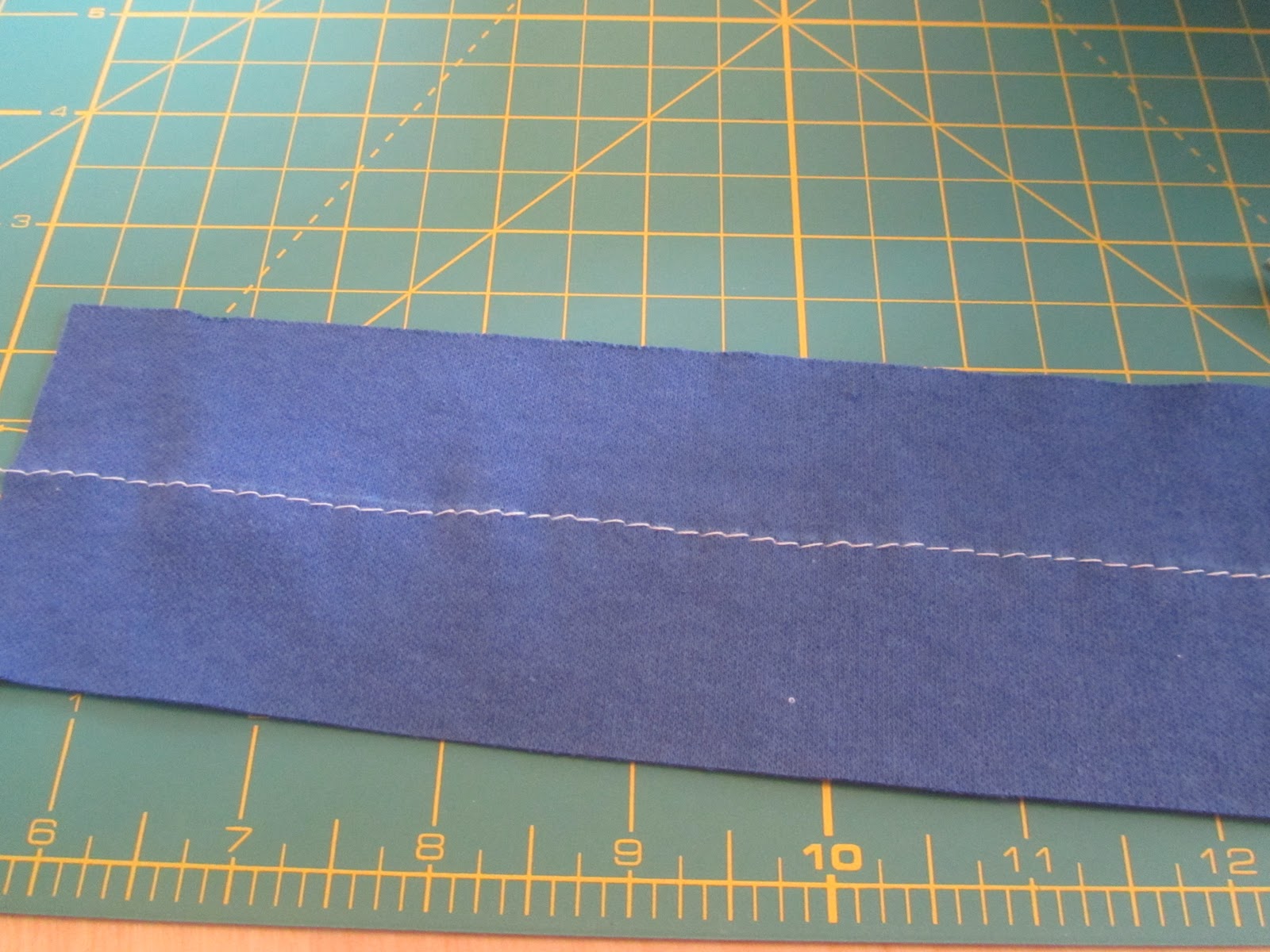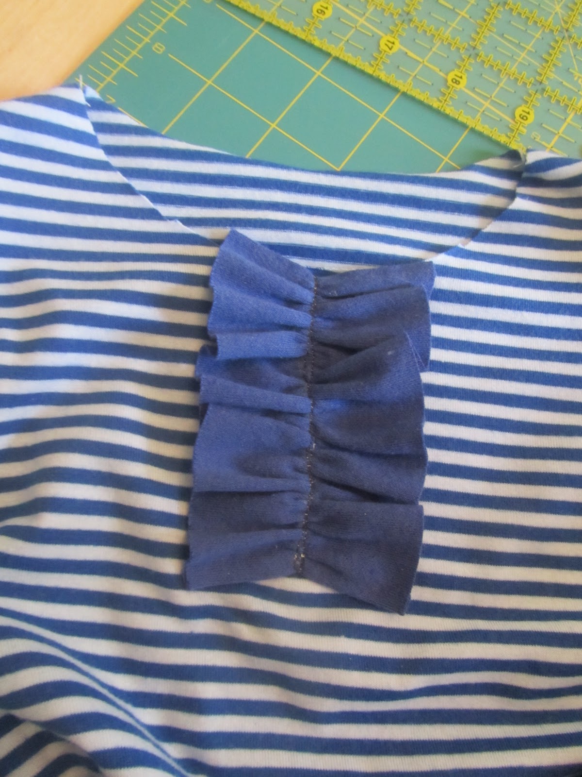 Now, this is another strip of fabric I cut to make the ruffles in the middle of the dress w/ the buttons. I just eyed the measurements to what I thought would look good after gathering it. Sew a gathering stitch in the middle and gather it.