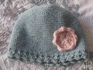 Then I also knit this lacy beanie. I LOVE this beanie!!! SOOOo cute. I made it in the 3-6 month old size, but I think I’m going to make another one in the 0-3 m size so my newborn can be stylin’ as soon as she’s born. 🙂 I mean, come on, these are much cuter than the ones they give you at the hospital, AND I used organic cotton… can they beat that?