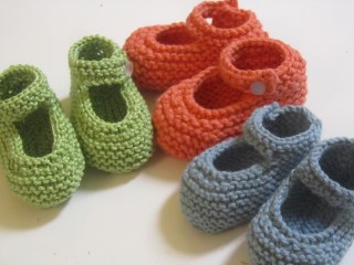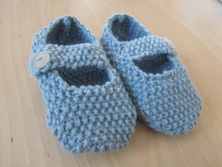 Knit these blue Mary Jane booties from the Zoe Mellor book “Adorable Knits for Tots” http://www.amazon.com/Adorable-Knits-Tots-Stylish-Toddlers/dp/0873498526