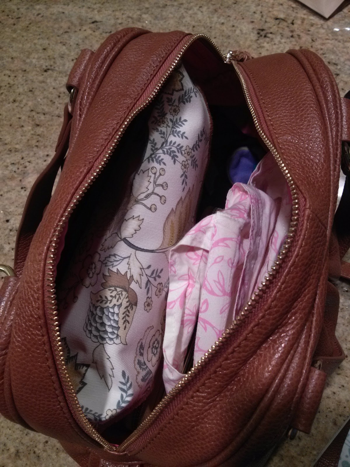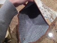 I hate opening up my purse and seeing the spare diaper that is squished and wrinkled from my wallet and other very important stuff being jammed on top of it. It makes me wonder if the diaper is even clean. SO, I found a cute table runner at TJ Maxx in the clearance section for only $5 and bought it because the design of the fabric was beautiful and the weight of the fabric was really nice.