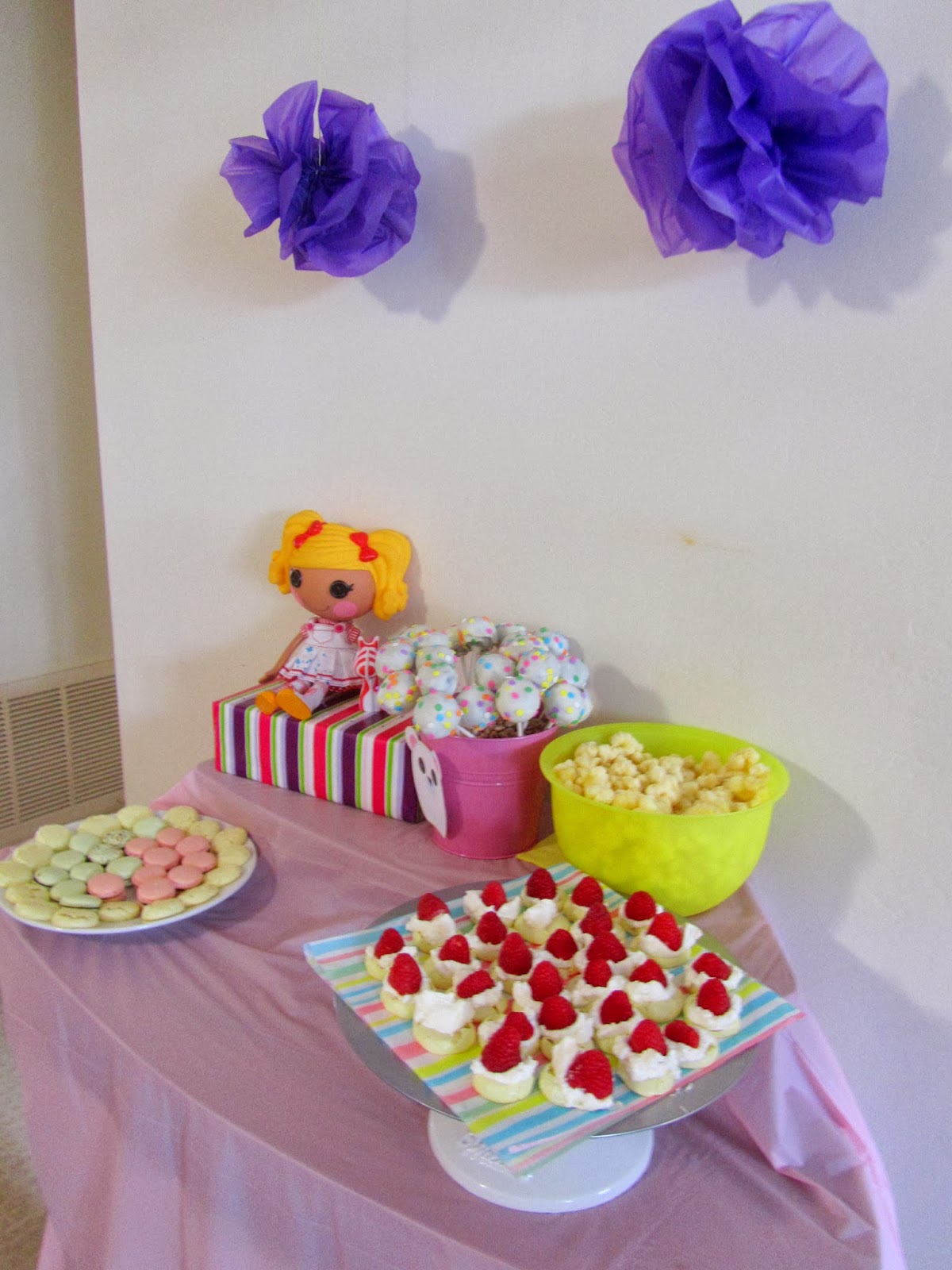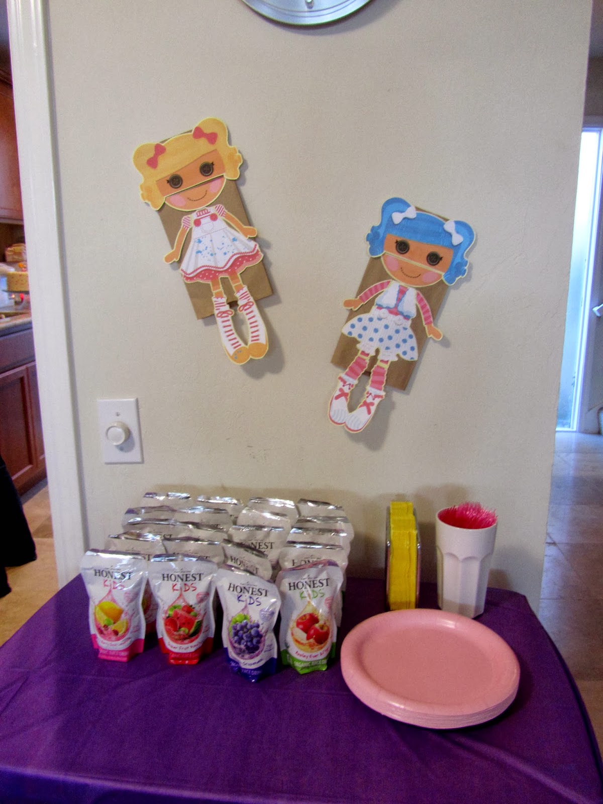 I tried to keep the party simple and used the craft paper bag lalaloopsy puppets as examples (for the kids’ craft) and decor. You can print them off on