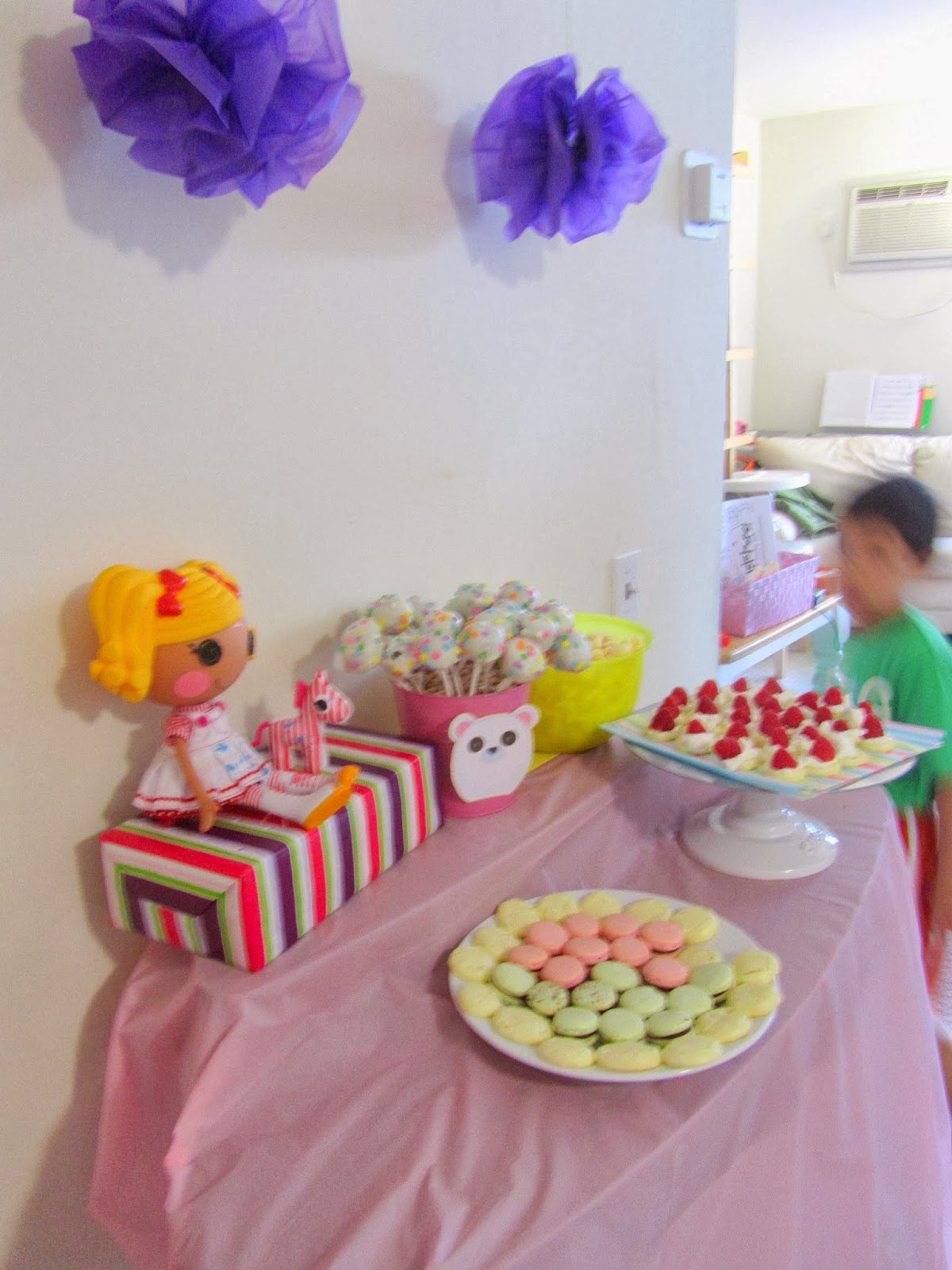 My daughter just turned 4! Where has the time gone?!!?!. So for my little girl’s 4th birthday she wanted a Lalaloopsy theme, which was not too difficult with all the resources out there posted by wonderful bloggers and all the free printables from Nick Jr. I gleaned inspiration from birthday express and from images I searched on Google and I was excited to use some recipes I’d been wanting to try including a 6-layer birthday cake, macarons, and an Oreo cookie pop. I’m usually a procrastinator but this time I made myself prepare early enough so I wouldn’t kill myself, but ha ha… I still ended up procrastinating a lot of decorations so here I am recovering from it.