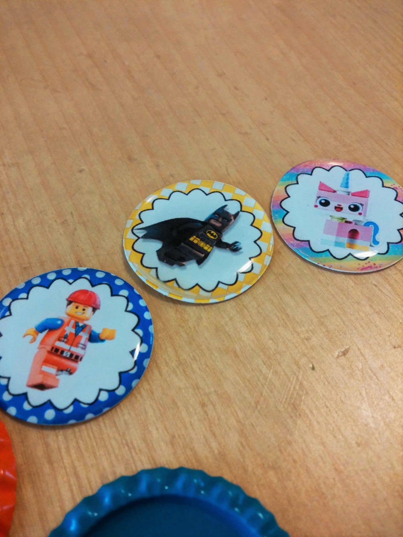 While getting a few things ready for school, I made some keychains for the kiddos’ backpacks with some of their favorite characters. I had all the materials leftover from a birthday party many moons ago. My daughter had a birthday back in March and asked for a gymnastics party after she had a blast attending a friend’s birthday party at the same venue. She also wanted the birthday theme to be Strawberry Shortcake so I decided to make bottlecap necklaces and keychains for party favors. I looked around online and found the following method to be the most simple and cute for making these bottlecap necklaces/chains.