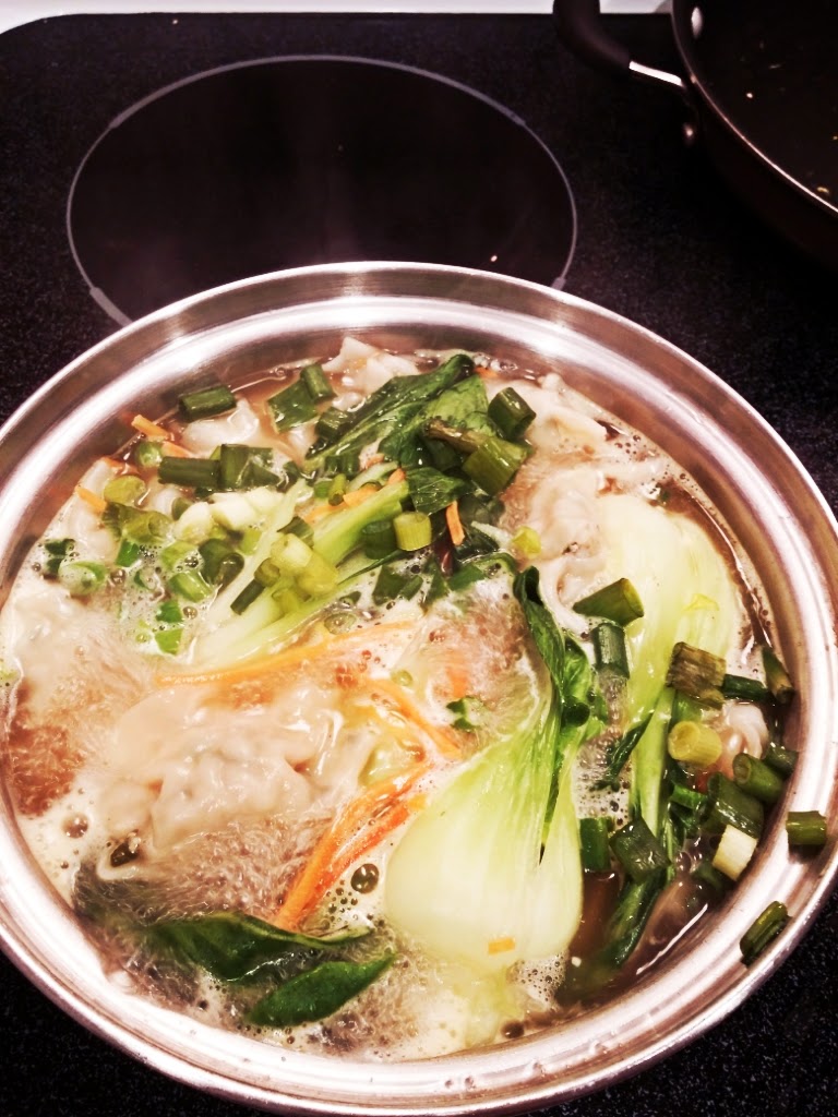 - When the soup is boiling, add the silken tofu and break it up into big chunks with a spatula and bring to a boil. Add the eggs and again bring to boil.